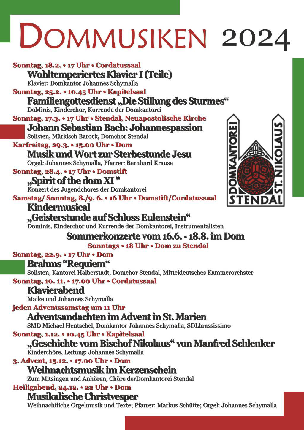 Ein neues Jahr beginnt und damit erklingt wieder wunderbare, vielfältige Musik in St Marien und dem Dom zu Stendal.